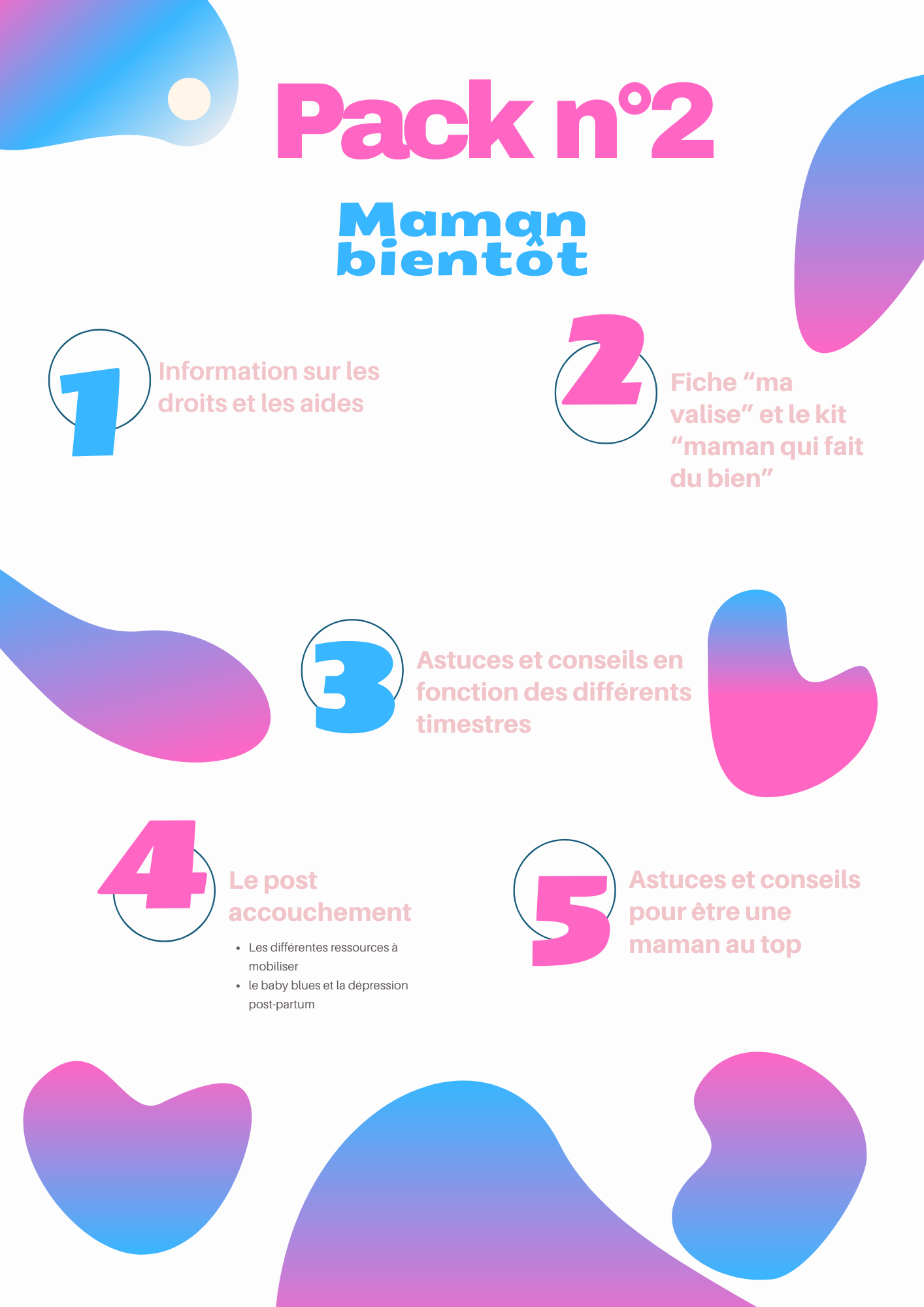- Femmes enceintes (accompagnement durant grossesse et post accouchement)